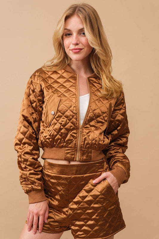 Quilted Crop Bomber Jacket and Short Set