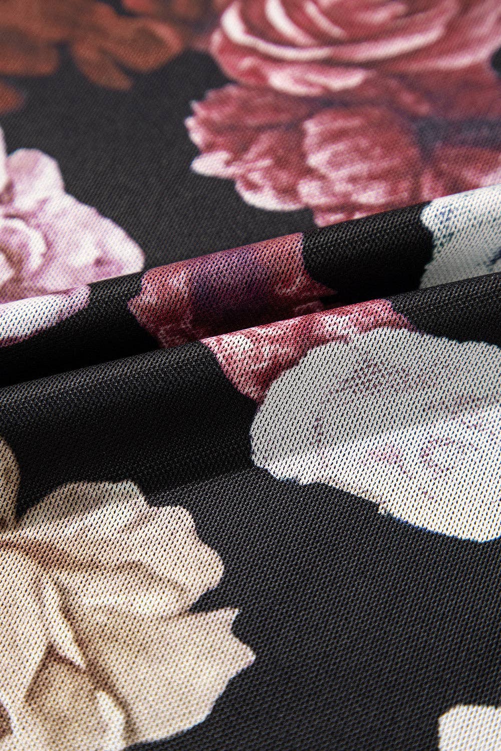 Experience the beauty and allure of our top. The blooming flower pattern and mesh fabric create a gorgeous and alluring look. With a modest mock neck and long sleeves for coverage, this slim fit top flatters your curves and can be paired with any fashionable bottoms. Amp up your style and confidence with this versatile and stunning piece!