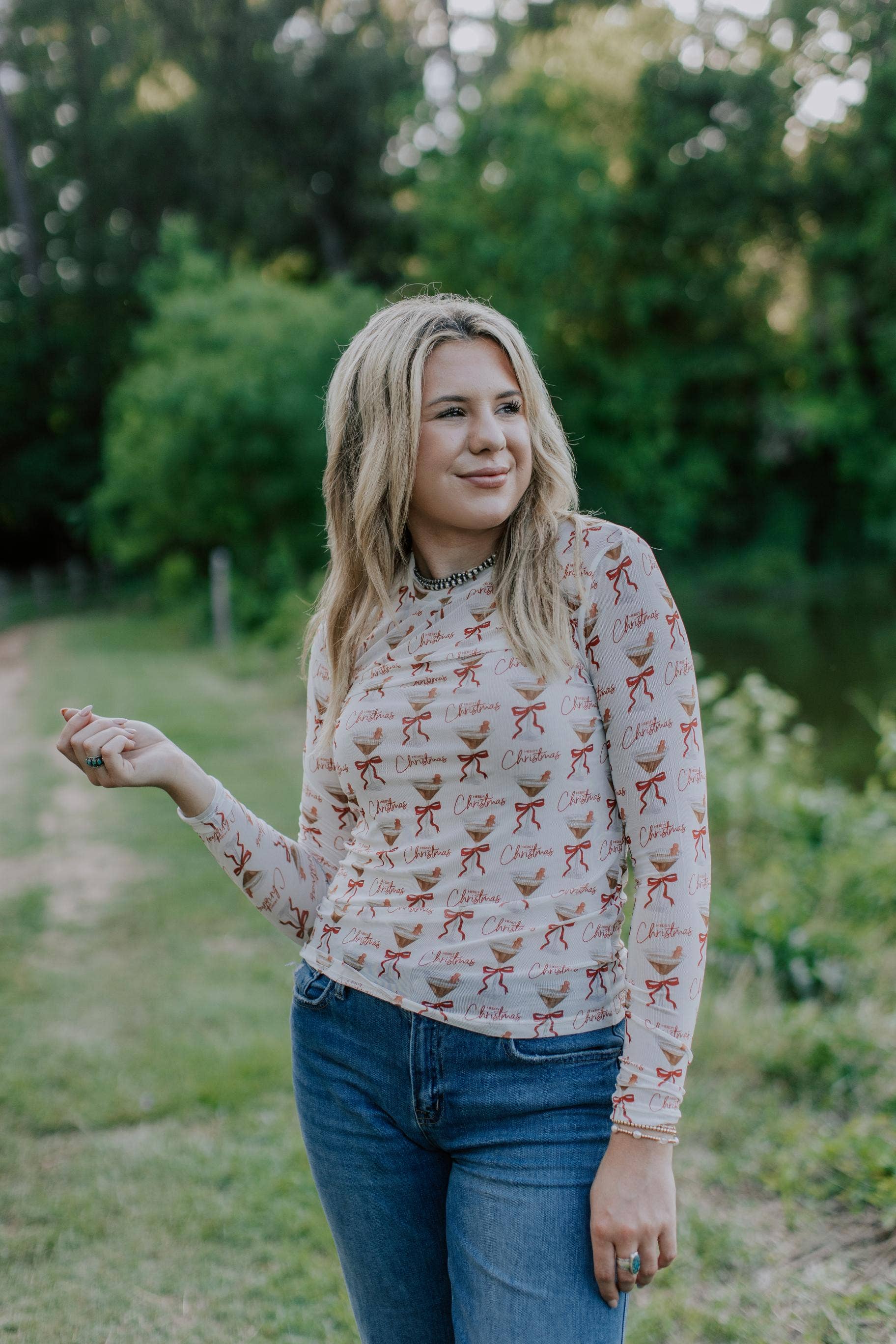 Get ready to stir up some fun in this white mesh top designed to keep your holiday spirit bubbling without the bulk. Perfect for festive nights out or cozy celebrations, its playful style pairs effortlessly with your favorite party looks. Shake things up with this flirty and breathable layering piece that’s as spirited as your favorite martini.