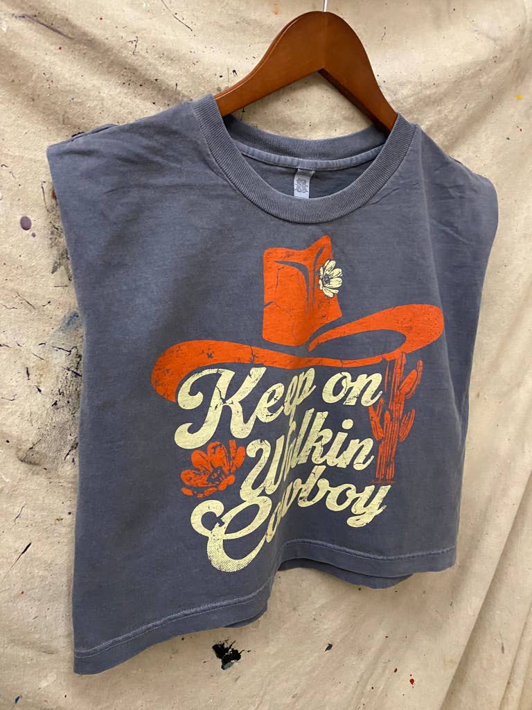 Country Deep Walk on Cowboy vintage Boxy Cropped muscle top