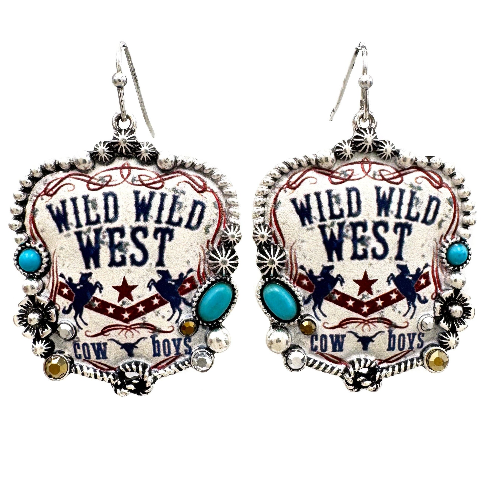 Introducing the must-have accessory for any true cowboys beer fan - our Wild Wild West Beer Dangle Earrings! Made with stunning turquoise stones, a shining star, and a cowboy hat charm, these earrings are the perfect way to show off your western spirit.